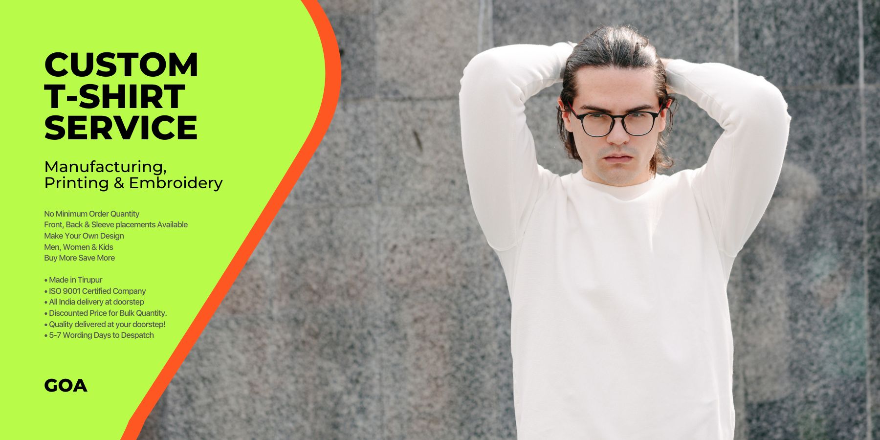 Scott Tirupur Manufacturers Goa do not place any constraints regarding the minimum order to be placed. You can order just 1 (Single) T-shirt / Hoodie through our Digital / Screen printing & Embroidery service.