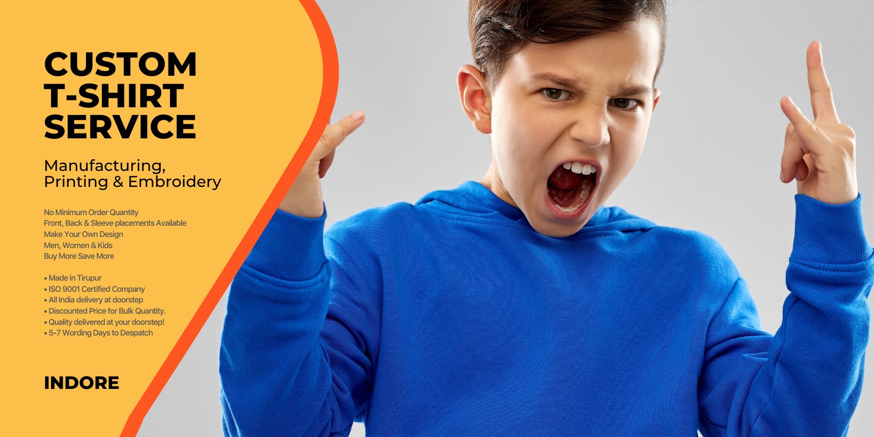 Scott Tirupur Manufacturers Indore do not place any constraints regarding the minimum order to be placed. You can order just 1 (Single) T-shirt / Hoodie through our Digital / Screen printing & Embroidery service.